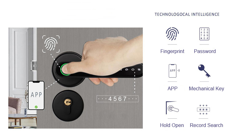 قفل ذكي داخلي يفتح عن طريق الرقم السري والبصمة والتطبيق.